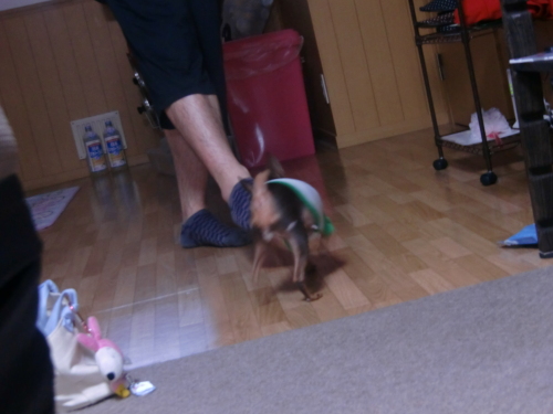 おかえり~ってくるブブちゃんは一目散に向かうとこ 帰ってきた人の靴下なぜなんだろう くぅが帰ってきてもタイガが帰ってきても必ず靴下へ一目散ですよワラ尻尾フリフリしながら 取りたいから必死に喰らい付いています 奪った後はベットの上に持っていくか座椅子の上に持っていって自分で少し遊びますその後は得意げな顔でアピール いつもブブちゃんは帰ってきたくぅとタイガを楽しみに待っているのか2人が履いている靴下を楽しみにしているのかわからないブブちゃんでした 写真ボケボケですみませんタイガ