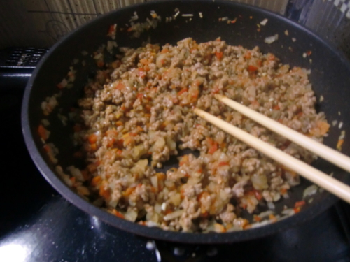 こんばんわ今日はお休みだったのですが特にすることを思いつかずゴロゴロ今日はタイガが料理を作る日なのですが晩ご飯が思いつかない…ってテレビつけたらあっこれにしよっと思ってくぅに買い物を頼みました初めて作る料理だからどうかなと思いましたがかなり簡単にできました 作る途中の写真です これをみて何かわかりますか もうすでにかなりいい匂いで完成が待ち遠しいくぅ この後調味料とか入れて味を調えたら完成 今日の晩ご飯は ドライカレーでした昼くらいに再放送のしゃべくりセブンでドライカレーやってて食べたくなったので作りました味はとってもおしかったです少しパンチが足りない感じでしたが その頃ブブちゃんは・・・見えますか少し舌が出てるのワラ目の前におやつがあると早く食べたくて舌が出ちゃうブブちゃん可愛いです今はガムを必死に食べてますよ タイガ