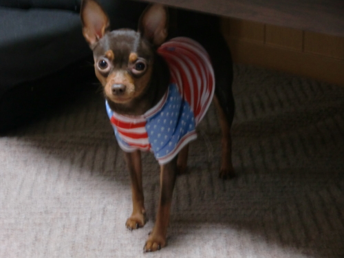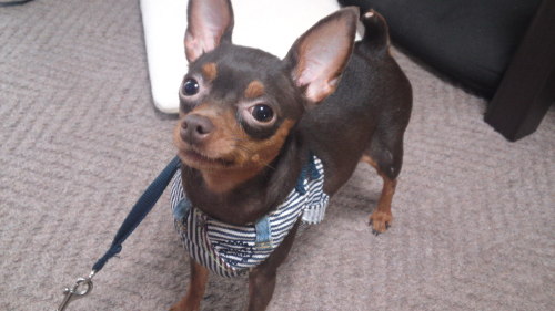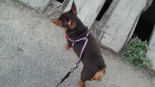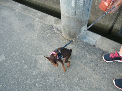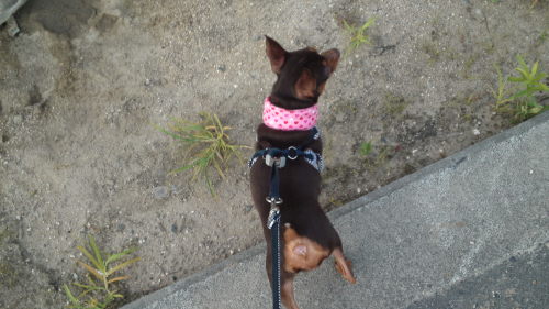 タイガが帰ってくる前にブブのお散歩に行ってきました出発する前のブブルンルンですとりあえずいつものコース立ち止まるばかりのブブ見ている先に特に何かがあるわけではなくただ止まって遠くを眺める次は田んぼの前で立ち止まる田んぼや畑の多い場所を通るのでおばぁちゃんやおじぃちゃんが多くよく話しかけられます「なんて言う犬でぇ?」と聞かれて『ミニピンです』と答えてもわかってくれるおばぁちゃんおじぃちゃんはいません大抵「ミニかなぁ?確かにちいさいなぁ」と言われます(笑)ブブがいるといろんな人とお話する機会が増えるので楽しいですお散歩中にミニピンに出会いたいのですがなかなかミニピン探しは続きます帰ってから扇風機の前で涼むブブちゃん暑かったね暑くても毛布が好きなブブなのでした くぅ