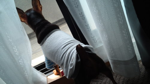 今年の梅雨はよく雨が降りますねそのお陰でブブちゃん外ばかり見てるお散歩が大好きなブブちゃんだからお外に出れなくて運動不足みたいこの顔ワラ 満足だとすぐ寝たりするのに最近お散歩いけないから毎日不満みたいこんな状態が続いちゃうとまずいこのたるんだ体お腹ぶよぶよでたれまくってる早く梅雨があけてほしいと思うブブちゃんでしたタイガ