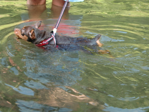 こんばんは昨日UPするはずだったブブちゃんの川遊びの様子いつもお風呂では泳がせて(無理やり)いたのですがお外で泳がせるのは初めて思ったよりスイスイ泳いでた「ブブ~」と呼ぶと泳いでくぅのところへ泳いできてくれましたでも実は水が嫌いなブブちゃん水から出ると尋常じゃないくらい震えてましたでも泳がせているうちに少し慣れたみたいで自分から水の中に入っていましたこの日も暑かったから水の冷たくて気持ちよかったはずまた遊びに行こうね\(^0^)/ タイガは今日からまた出張なのでブブと2人でお留守番2日間ベットが広いね最近気づいたらブブちゃんがくぅの枕を占領しているので毎朝首が痛いくぅであります くぅ