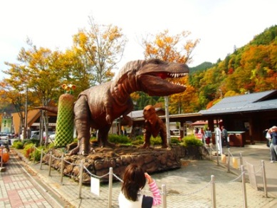 むかし むかし うらの山奥には恐竜が闊歩してたんだ第一発見者は実はぼくなんだ釣り仲間とイワナを狙って渓流を歩いていた時 目の前の岩肌にカエデのような窪みをみつけ友人にこれ、恐竜の足跡じゃないか!?と言ったんだけど 釣りに夢中で一笑されたよ記念に足跡に手を当てて ケルンを立てたんだそれから 5年後に化石が発見されて大騒ぎさいまじゃ 町おこしで一役買っているんだよ第一発見者は「うら・縞太郎だ~」って叫んでも もう遅いうらんとこの水瓶 九頭竜ダムこちらでは白樺林がすくないんだ だから白山とか山登りしないと綺麗な紅葉は望めない福井県勝山市の恐竜