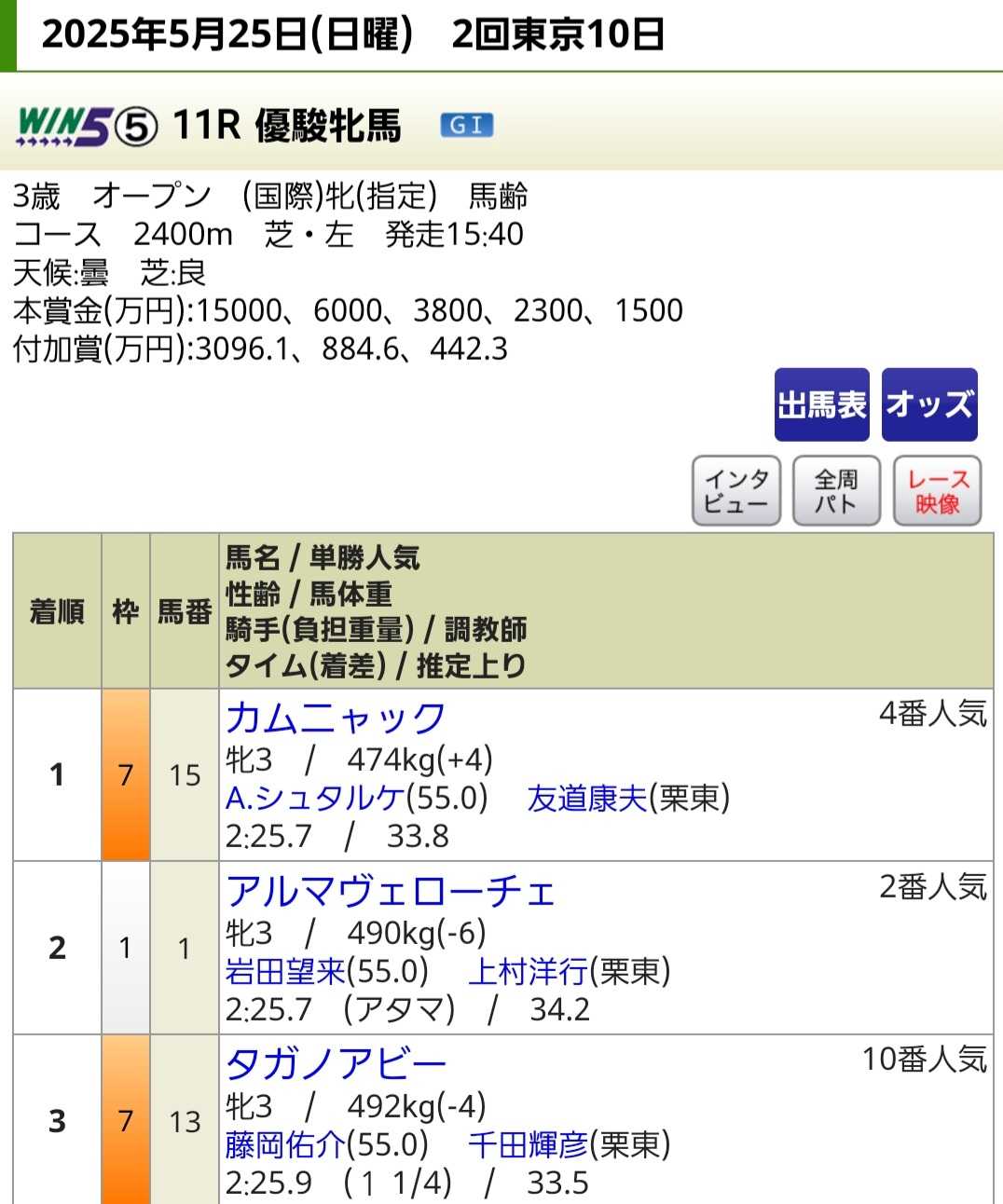 馬券的には この馬を拾えていなかったことで ハズレ...。(悲)