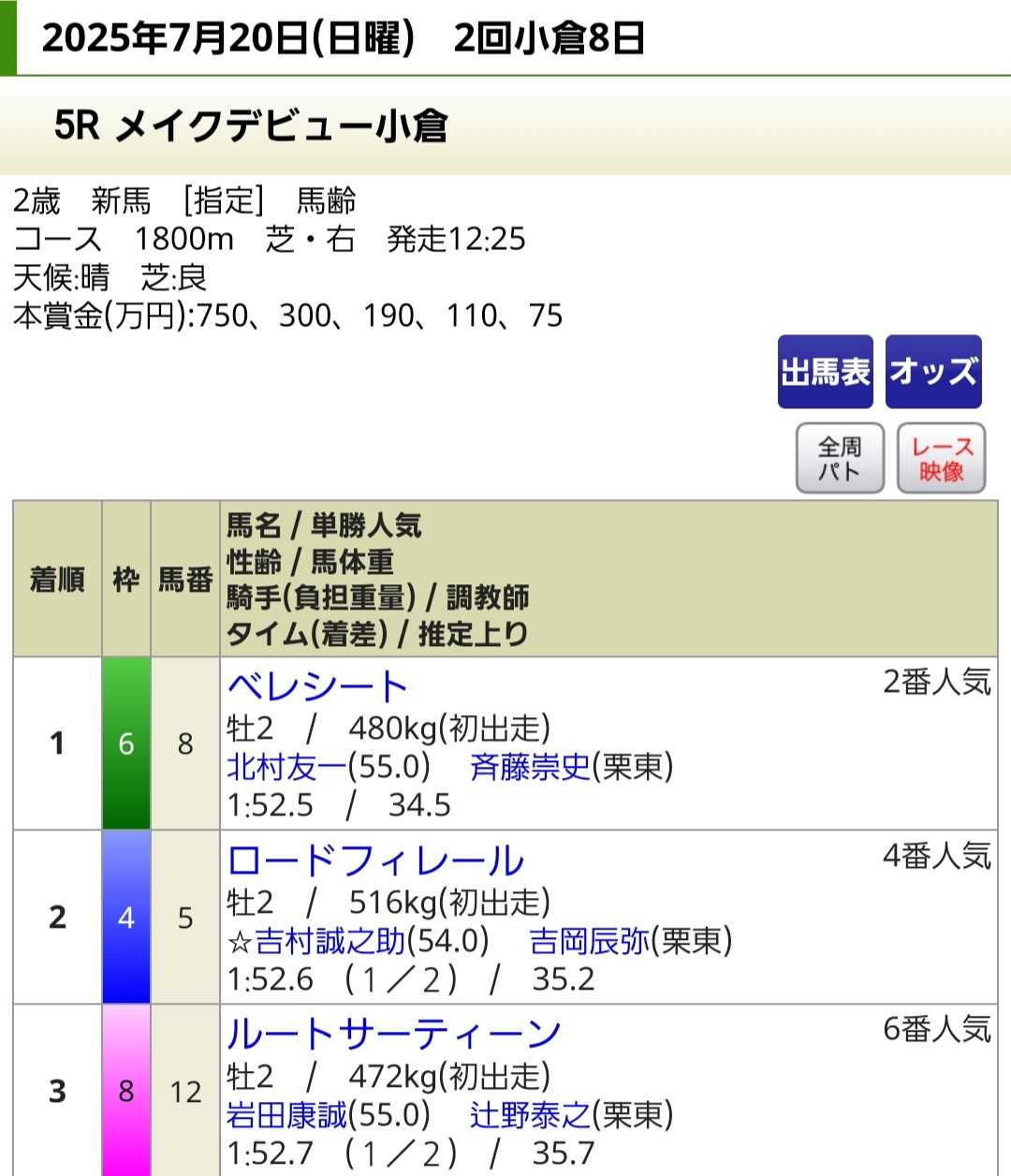 ただ、昨日(日)は 新馬戦 で 嬉しい結果。