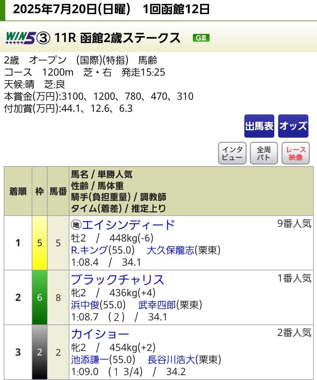 って言うか、函館2歳S を削ってでも「単勝 1000円」行っとけよ!!
