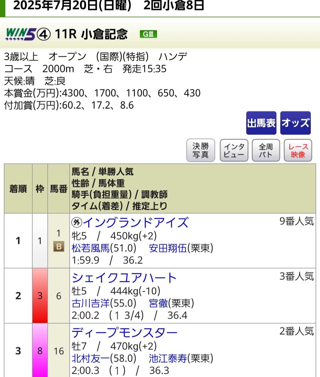 こちらも 9番人気、これぞ 夏競馬、これぞ 小倉記念 。