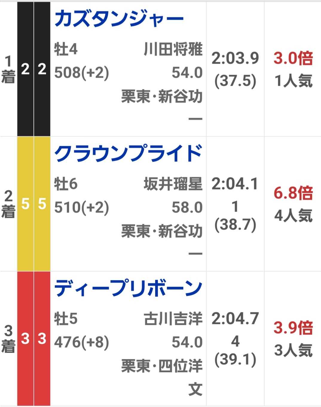 まぁ、斤量差 と 展開 を 考えれば「なるほど」の結果です。
