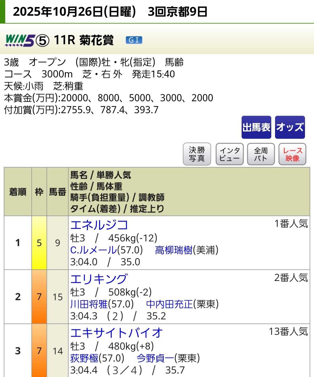 (もし、天皇賞・秋 で勝利しても エネルジコ だとは思いますが...)
