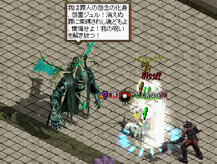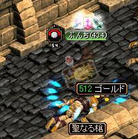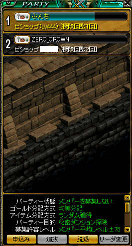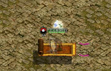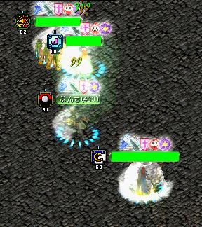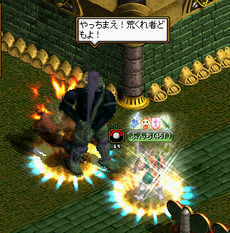 実装後、はや何ヶ月でしょう?初めて遭遇しました。そう、ボスですよ、ボス!先に戦ってたワンコさんに声をかけ、快く了解を頂いての参戦です!!MOBがよくわからなかったのですが、某サイトによるとオーガ覇王:Lv446~450とのこと。ぶんちは、ちょうど適正でも、運2000↑、敏捷201↑のステで結構空振りしてました><あんまり、役に立ってませんでしたね^^;2人で5分強くらい殴りつづけ、見事、撃沈!T品は・・・・・・・・・・・・・・・落ちませんでした、残念><