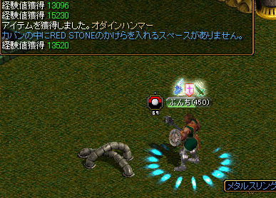 イロイロと諸先輩より、アドバイス頂けました^^ありがとうございまーす(o´∀`人)・・・実は、ぶんちがモリネル時代に貯めた財産は、昨日、フォムガでも異次元でもなく、すでにコレにかわってました・・・自力ドロップを断念し、有り金ハタイテ買っちゃいました!生涯最高額の買い物でしたが、悔いなし!!すっからかんになったぶんちは、アドバイスを見て、「それなら、フォムガは自力ドロップだー!」とばかりにモリ1へ。(単純・・・( ̄▽ ̄;))以前からのダメの伸びに満足しながら殴っていると、偶然下でも殴りBISさんが狩っていました。「珍しいところ(爺有・馬有)で狩りしてんだなー」と何気なく見ると・・・ガ━━(゜Д゜;)━( ゜Д)━( ゜)━( )━(゜; )━(Д゜; )━(゜Д゜;)━━ン『ダメが倍近く出てる・・・』(しかも、ぶんちはホール系・・・)鈍器が光っていなかったところを見ると、もしかしたら、高Lvさんかバッジさんなのかもしれませんが・・・んー、これだけの差はちょっとショック;;ようやく装備が固まったーと思ったけれど、殴りの道は険しいようです・・・最近ちょっと調子に乗り気味だったので、謙虚に精進しよう(´・ω・`)