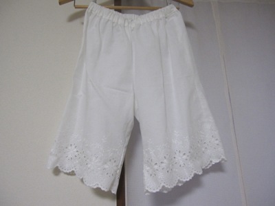 かな~りごぶさたしていました元気にしております夏のあいだに作ったものです※型紙 ポシェより キュロットパンツアレンジ※布地 animo かなり前に購入していた綿のスカラップです何を作ろうかと考えて、そのままになっていました以前作ったスカートがうっすらと透けるので、その下に履くペチパンツを作りましたペチコート(スカートタイプ)よりパンツタイプがうごきやすいかな~ということで、キュロットをアレンジして作りましたスカートしたに履くと表から見えず、いい感じです次に、シンプルブラウスです※型紙 C&S「ソーイングの日々」より シンプルブラウスMサイズ※布地 C&S 綿麻レースプチロンド(スモークエメナルド)この布、と~っても可愛いですおしゃれで、きちんと感もあるので、仕事着でもオフでも活躍してますパターンはシンプルなブラウスですC&S本「ソーイングの日々」はすっきりしたデザインが多いので、お勧めです~後ろには、キャンディーみたいなボタンをつけました(ジャスコで購入だけど・・・)見返し部分にはちょっと既製品ぽく初の巻きロックを意外に簡単に出来た巻きロック。今後使えるかも?! あっという間に、秋らしくなりましたね最近、休みの日でも、なかなか朝が起きれませんぼちぼち、ぬいぬいしていきます~