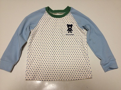 ほんっとに・・・・暑いあまりにも暑いので、手短に・・・。保育園での着替え用が足りず、必要に迫られ作りました。次男youのTシャツです。※型紙 polka本「ラグランTシャツ」110※布地 SMILE(天竺)、C&S(フライス)※フロッキー アンの木パターンほぼ、あまり布です。丸ポケットはお気に入りです