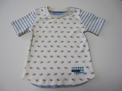 ここのところ、仕事で土日がつぶれるので、なかなかぬいぬいできず・・・でも、やる気は出てきました必要に迫られ、息子naoのTシャツ※型紙 polka本 シンプルTシャツ120※布地 slowboat(バス柄)、RickRack(水色無地)、cocolo-ne(ボーダー)※タグ C&S余り布処分中なので、バス柄は前身頃のみしか取れず・・・後ろは無地です・・・タグを喜んでくれましたシンプルTの形裾がカーブしていて可愛いです息子naoには、サイズ120はちょっと大きめですが、綺麗な形なので気になりません!すっきりしたデザインです☆ あと、いくつか作ったのですが、デジカメが行方不明に・・・見つかり次第、UPします