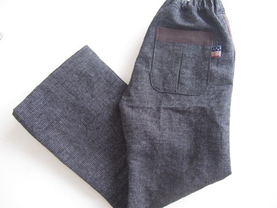 ず~ッと前に作った「でかバッグ」のあまり布が残っていたので、カジュアルパンツを作りました。※型紙 polka本1 「カジュアルパンツ」 120※布地 cocome`re 「ヒッコリー」※タグ C&Sかなり張りがあり固めのヒッコリーだったので、動きにくいかな~?と思っていましたが、丈夫でいい感じになりました(短パンくらいなら動きづらさもなさそうです)洗濯で柔らかくなっていくと思います。固い布なので、サイドポケットとフラッグは省略して、後ろポケットを2つ付けましたタグはずいぶん昔に購入したC&Sさんのタグセットに入っていたもの。これがとてもヒッコリーに合っててちょ~かわいいです(タグだいすき~)