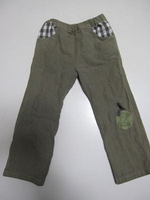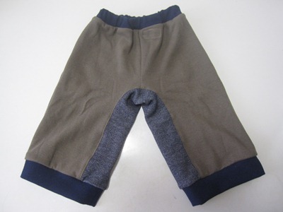 かな~りお久しぶりです生きてますよ~元気ですよ~ぼちぼちですが、作ってますよ~パソコン開く余裕がないだけ…お兄ちゃん用パンツ※型紙 polka本1 「ニットパンツ」120 アレンジ脇ポケットなし※布地 cocolone カーキのダブルフェイス(?たぶん?)animo デニムニット裏毛※タグ C&S3~4年寝かせていたニットです。購入したのはいいけど、あまりにも渋い色合いで・・・(おじいちゃん色)やっと形にできました! 後には、はぎれのスムースでポケットを。お気に入りのC&Sさんのフランスタグ息子naoは服を選ぶ時、ニットパンツを選んで、小学校に行くことが多い!着やすいし、動きやすいんだそう