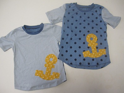 本当に、お久しぶりです。仕事で、家を留守にする日が続き、やっと落ち着いて、パソコンに迎えています。ずいぶん前の作品ですが・・・兄弟お揃いのTシャツです※型紙 plka本より「シンプルTシャツ」110、120※布地 SMILE 綿麻天竺とプレゼントされた布(水玉)スラブ天竺スター(イエロー)水色の布は私のTシャツのあまり布です水玉の天竺はSMILEさんでプレゼントされた布。薄手で何となく作っていなかったのですが、夏用Tシャツにはとても良い布でした(もっと早く服にしとけばよかった・・・)そして、初挑戦のイカリのパッチ天竺のニットを切って、縫い合わせただけ!それでも、とてもかわいくできましたお気に入り後は二つとも水玉ですイカリがとってもお気に入り