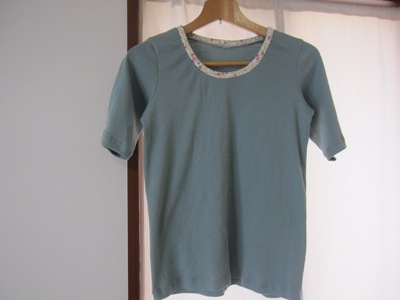 大雨の影響で、職場が浸水し、今、復旧作業に追われています今日までで半分位片付きました~まだまだ、泥との戦いです。。。さて、少し前に作ったものたち※型紙 Wildberry(おまけレシピ) フライスで作る基本のカットソー(ラウンド・5分袖)※布地 C&S フレンチフライス(スモークグリーン)SMILE スパンフライス※タグ C&Sフレンチフライスはタートルを作った残り布です最近、布の禁断症状が出てしまい、SMILEさんで布を購入その時、プレゼントでスパンフライスセット(アウトレット)をもらいました。襟ぐりのバインダーはそのプレゼントに入っていたスパンですなんだかシンプルすぎて寂しいカットソーだったので後ろにポケットをつけましたタグも付けると、少し個性的になりました さて、次は、ドルマンTシャツ※型紙 polka drops ドルマンTシャツ(Mサイズ)※布地 SMILE ベルギーリネン混天竺(ペールグレー)また、素敵なパターンに出会いました~立体的なパターンになっているらしく、着るとすっきりしますウエスト部分がくびれて見えます作り方も簡単今回はバインダー仕上げにしました。仕様書どおりにすると、綺麗にできました今度は裾を短くしてつくろうと思います(裾丈が少し長め)