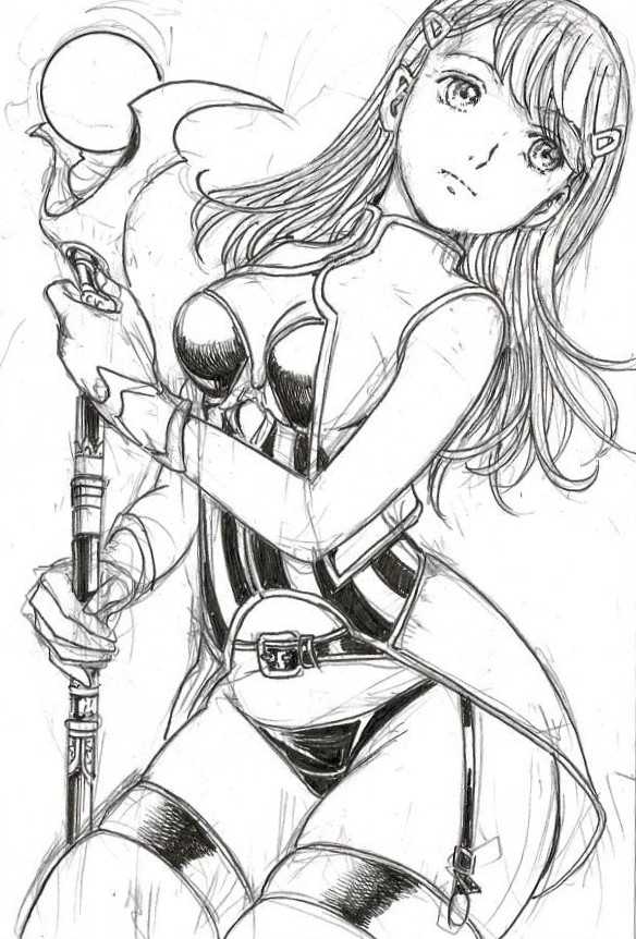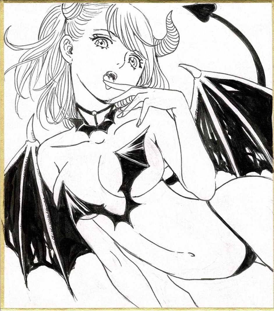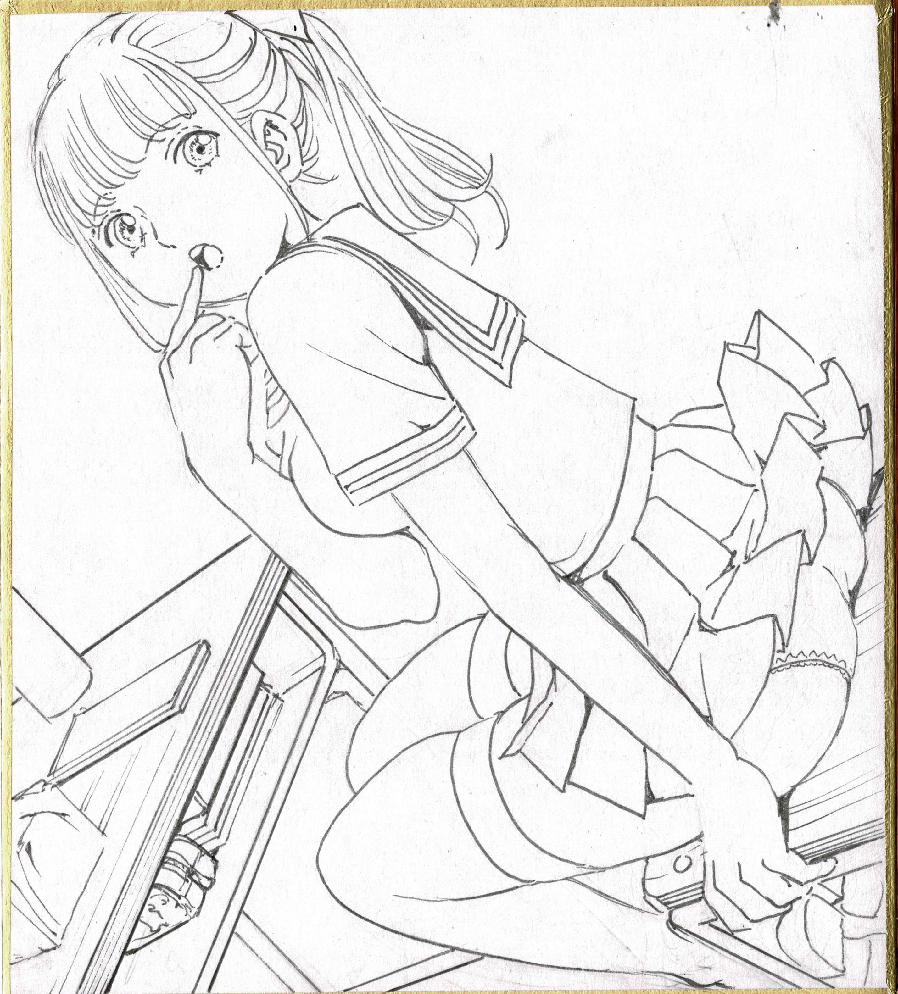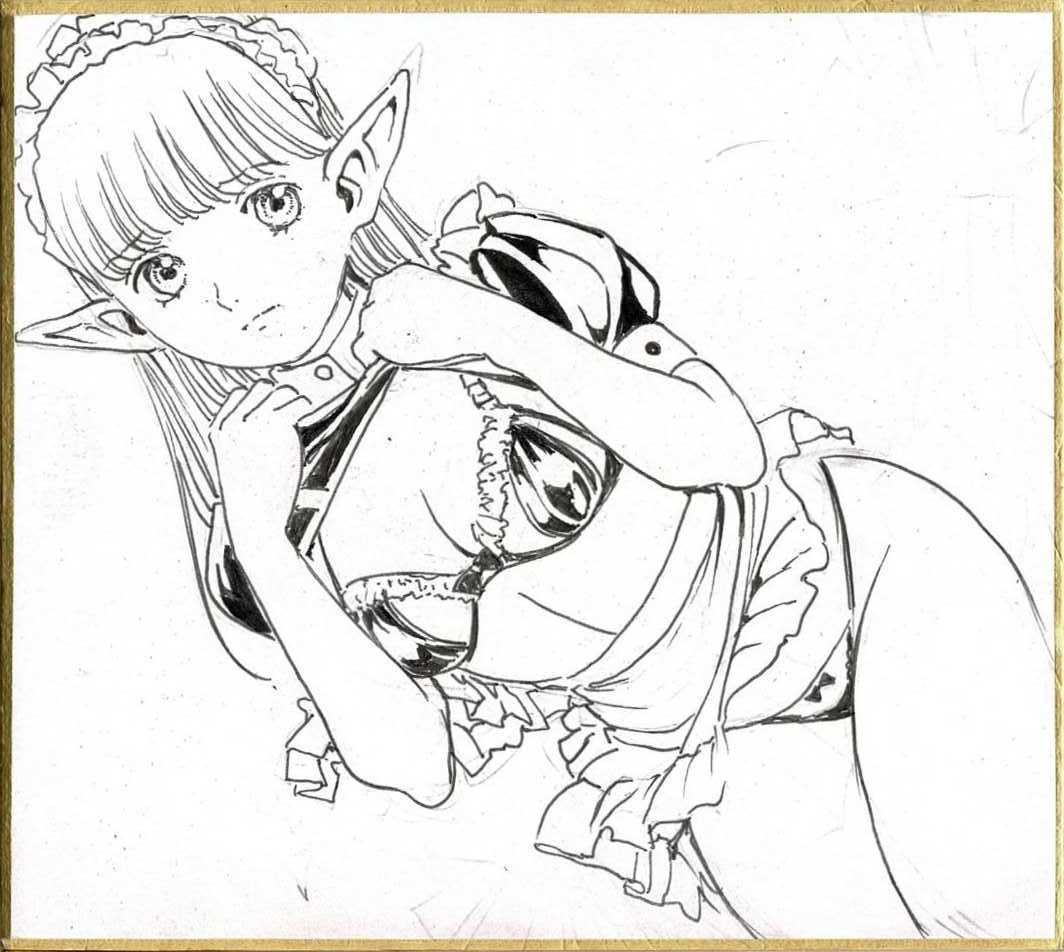 これ・・某オークションで出品、落札されたワタシの直筆サイン本(モノクロ)のイラストをセルフ模写して着色しました!すんどめ自衛隊の千秋さん。これを某オークションにかけたら落札金額越せるかなぁ??