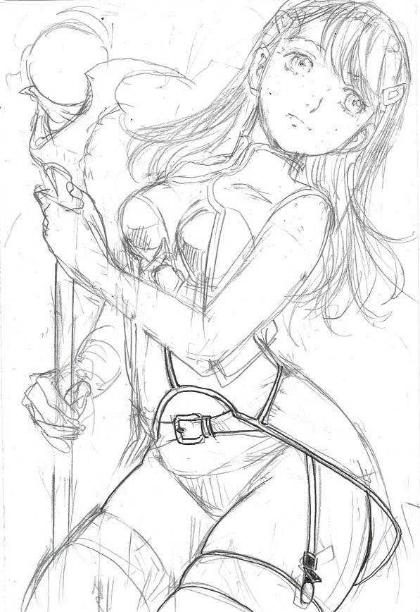 昨日、自分が描いた「すんどめ自衛隊」のサイン本が落札されるところ見てしまいました。たまたま見つけて「これ今オークション途中やん!」怖いもの見たさで追っかけてたのですが、5500円から始まり・・・7000円まあ順当な値段やな17000円・・・ええ値段しとるで~26000円?ちょっと高くないか?モノクロやで締め切り時間になったのでこれで落札か?と思った瞬間、ライブオークションというのが始まって、え?どういうこと?終わってないの??なんなの?とオタオタしてたら最終的に35000円!!!で落札。え~~~~!!あの絵で35000円??僕もほしい~~と思って地団駄ふんで、気が付いたら・・その自分が描いた絵を模写してました。自分が描いた絵ですが・・・アップするのは落札した人に失礼かな?と思って思いとどまりましたが・・・