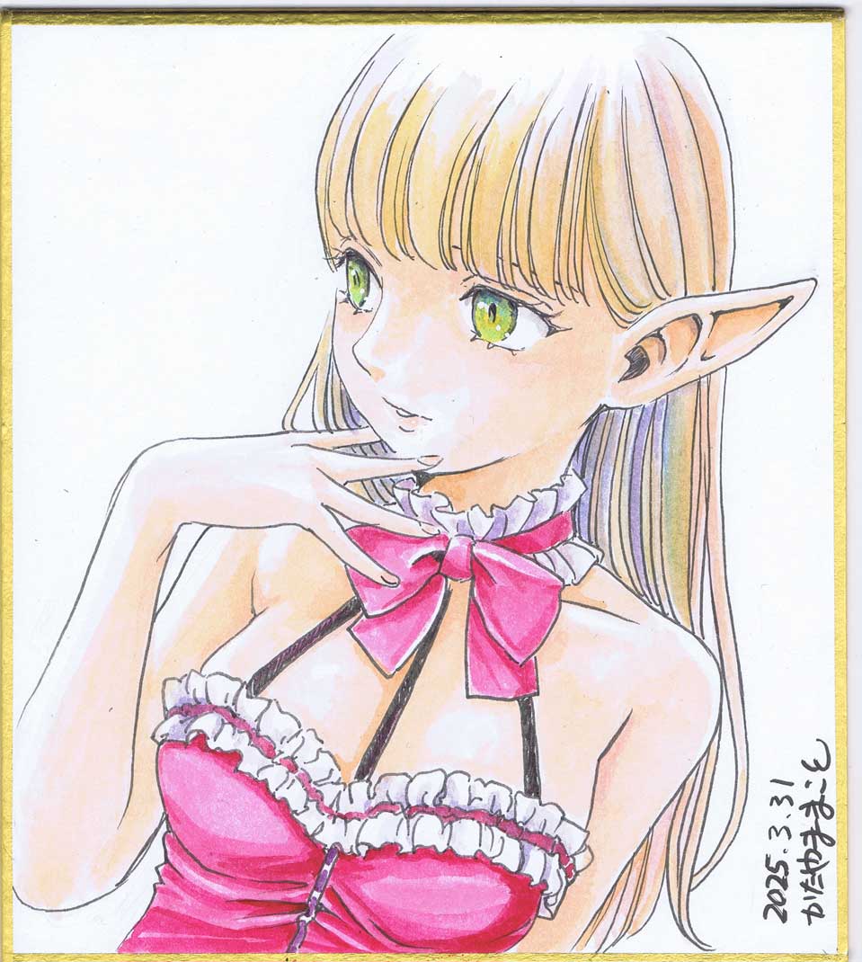 「エナメルスーツのエレン」の販売。直筆ミニ色紙購入希望の方へかたやまが描いたミニ色紙です。普通紙ミニ色紙136X121mm透明水彩 フィキサチーフコートこのブログにコメントで「直筆ミニ色紙購入希望」と返信してください。その時X(旧ツイッター)アカウント名とURLを張り付けてください。例 「直筆ミニ色紙購入希望」 @burajon2 https://x.com/burajon2応募者多数の時は抽選とさせていただきます。価格は18000円期間は9月10日(水曜)23時までです。購入権の当選者にはツイッター(X)のDMでGメールアドレスをお伝えするのでフォローがまだの方はフォローお願いします。そちらで住所と口座のやり取りをします。発送は国内限定とさせていただきます。