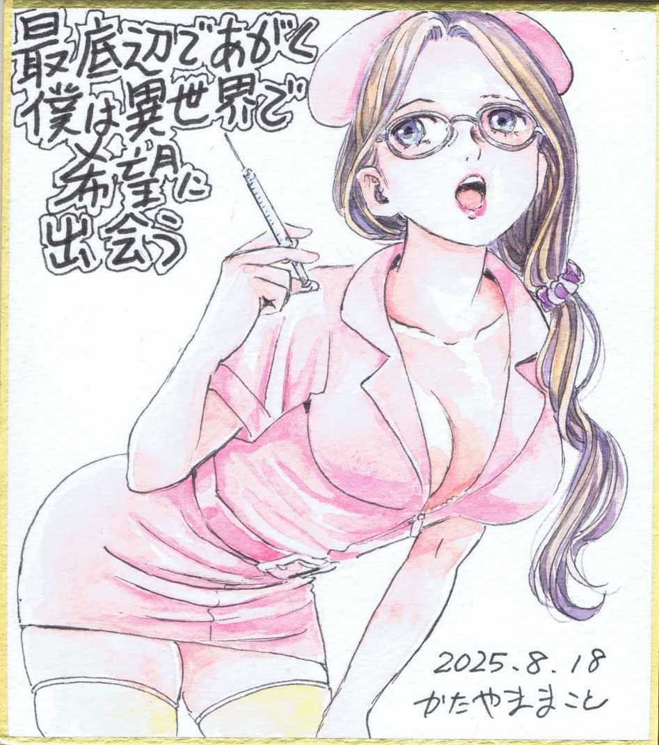 「ナースコスの更科さん」の販売。直筆ミニ色紙購入希望の方へかたやまが描いたミニ色紙です。水彩紙ワトソン紙ミニ色紙136X121mm透明水彩 ワニススプレーコートこのブログにコメントで「直筆ミニ色紙購入希望」と返信してください。その時X(旧ツイッター)アカウント名とURLを張り付けてください。例 「直筆ミニ色紙購入希望」 @burajon2 https://x.com/burajon2応募者多数の時は抽選とさせていただきます。価格は18000円期間は9月4日(木曜)23時までです。購入権の当選者にはツイッター(X)のDMでGメールアドレスをお伝えするのでフォローがまだの方はフォローお願いします。そちらで住所と口座のやり取りをします。発送は国内限定とさせていただきます。