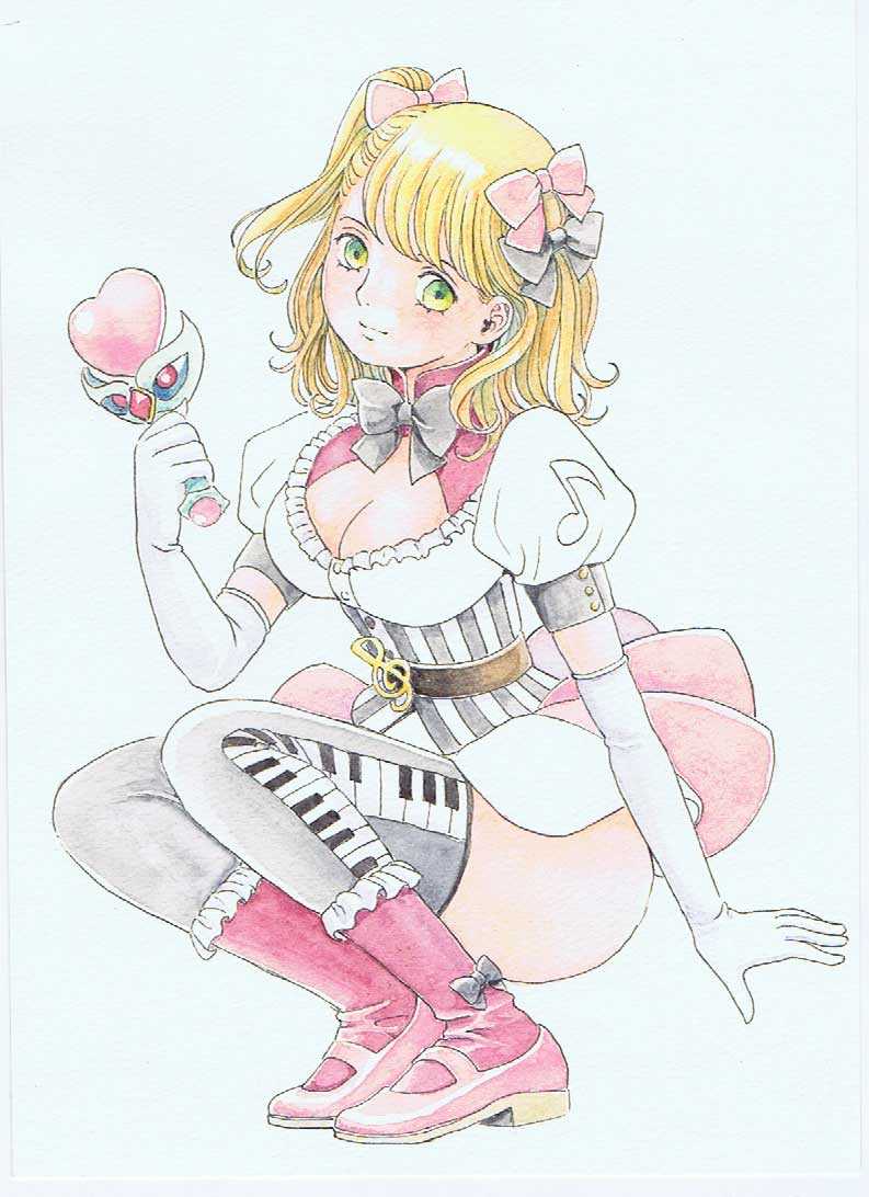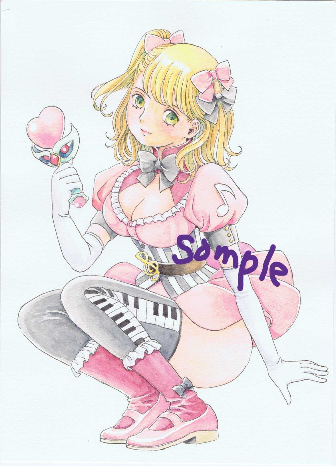 各店共通特典イラストは当初アナログで透明水彩で塗る予定でしたが、塗り出すと画用紙の質が最悪で色のびしない浸み込んでムラになるは、毛羽立つはでろくな紙じゃなかったで、水彩を断念。トレスして描き直す時間もなかったので、PC塗りになりました。でも悔しいので単行本が出て企画が終了して時間に余裕が出来たので塗り直すことが出来ました。