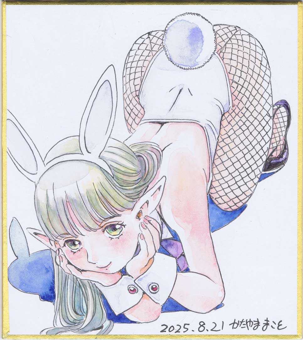 「バニーアリアのPOP」の販売。直筆ミニ色紙購入希望の方へかたやまが描いたミニ色紙です。水彩紙ワトソン紙ミニ色紙136X121mm透明水彩 ワニススプレーコートこのブログにコメントで「直筆ミニ色紙購入希望」と返信してください。その時X(旧ツイッター)アカウント名とURLを張り付けてください。例 「直筆ミニ色紙購入希望」 @burajon2 https://x.com/burajon2応募者多数の時は抽選とさせていただきます。価格は14000円(今回の書店様用POPはエレンしばりとしたためアリアはボツ。ですので少しお安いです💦日付も9月18日とするのに描いた日を入れちゃった💦)期間は9月4日(木曜)23時までです。購入権の当選者にはツイッター(X)のDMでGメールアドレスをお伝えするのでフォローがまだの方はフォローお願いします。そちらで住所と口座のやり取りをします。発送は国内限定とさせていただきます。