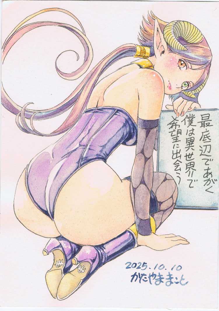 直筆「スパッツのアリア」の販売。直筆ミニ色紙購入希望の方へかたやまが描いたイラストです。ホワイトワトソン紙ミニ色紙(121X136mm)透明水彩 フィキサチーフコートこのブログにコメントで「ミニ色紙購入希望」と返信してください。その時X(旧ツイッター)アカウント名とURLを張り付けてください。例 「ミニ色紙購入希望」 @burajon2 https://x.com/burajon2応募者多数の時は抽選とさせていただきます。価格は16000円期間は11月16日(日曜)23時までです。購入権の当選者にはツイッター(X)のDMでGメールアドレスをお伝えするのでフォローがまだの方はフォローお願いします。そちらで住所と口座のやり取りをします。発送は国内限定とさせていただきます。