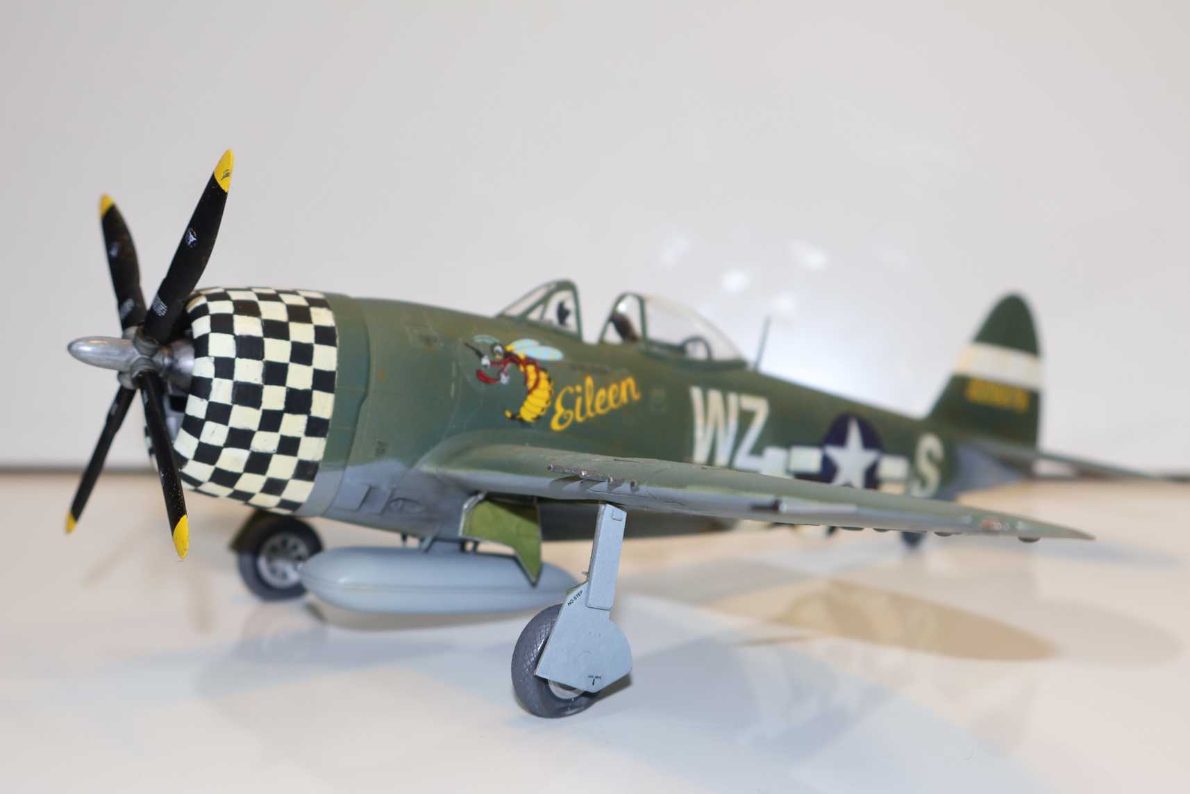 P-47D アカデミー1/48 このカラーリングが作りたくて買いましたが、デカールが水につけるだけで破れるほど薄い上にノリが弱い。カウリングのチェッカー模様はデカールがダメでマスキングで塗装。貼れたデカールも透けるのでレタッチ。もう完成させる!というモチベだけやりました。