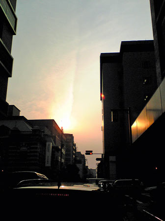 飛行機雲が魚の骨のようになっていた写真。ちょっと見にくいですが、太陽からまっすぐに伸びた雲。そこから左に細い雲が骨のように伸びています。見ているだけでなにか癒されていました。最近ちょっといらいら続き。元気も落ち気味。寝不足気味。街の雰囲気も暗いから・・・で、来月からは心機一転で明るくなることを祈っています。そう思っていたときの空模様です。