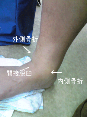 階段から落ちて右足骨折しました。荷物を抱えていたまま左足を滑らせ右足が階段に残って右足だけの正座みたいな形で足の上におしりが乗り全体重+アルファとともにのしかかり折れました。瞬間折れた!と思いましたが、さほど痛くはなく脱臼かな?と勝手に思っていました。さすがに体は震えが出てきました。これがその時の写真です。救急車を呼ばず、自宅の車で行きつけの整形外科へ行きました。レントゲンを撮ってみると素人目にみてもぼっくりと折れていました。その日はそこで添え木をしてもらい帰宅。本日27日に京都府庁前の日赤に行きました。どうやら手術することとなりました。ボルトで固定して、ゆがんだ間接を元通りにする手術です。右足首の両方が折れているので時間がかかりそう・・・29日入院、30日手術の運びとなりました。入院は約二週間。日記は携帯からアップしますが返信は出来ません。一番安い契約なのでWEB閲覧するとびっくり請求が来ると思うので・・・申し訳ございません。ご心配おかけして申し訳ないですが暫くお許し下さいませ。