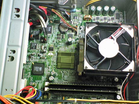 一昨日に苦労してバイクで取りに行ったPCのパワーアップを行おうと昨日頑張りました。日頃PCを触ることを趣味としていたので実に久しぶりの楽しみでした。日立のビジネスモデルのFlora 310W DA3というものでCPUはセレロンの2.0GHzです。このマシンの同型にはPentium4の2.8GHzというマシンまであるのでパワーアップです。中古で手に入れたので出来るだけ安くパワーアップします。同日に手に入れたPentium4 2.52GHzと換装してみました。ベースクロック533MHzX4.75の2.52GHzのCPUです。パワーアップが楽しみです。元々ベースクロック400MHzX5の2.0GHzのCPUだったのですがどうも動作がおかしい。1.9GHzでしか動作していない。(400MHzX4.75動作)BIOS上での設定項目がない。と言うことはマザーボード上のジャンパーかディップスイッチか?あわててマザーボードの中を見る。この中にジャンパーかディップスイッチがあるはず。ありました。この下の4桁の方のジャンパーディップスイッチでした。試行錯誤の結果写真の通りにするとすんなり動きました。どういうベースクロックの何倍で動いているかは未だ確認していません。でも調子は良いです。(5/8現在確認したところ533.3MHzX4.75の2.52GHz動作してました)とにかく、この作業をするのに正座がしたいのに出来ないのです。右足をのばしたままのぞき込む動作は、体の硬い私には非常に辛い仕事です。あ、仕事じゃねーな趣味だったよ。いつも正座するのだが(体が硬い為足を組んだりのばしたままだと後ろに倒れる)早く正座が出来るようになりたい。ちょっと本日は自主リハビリ・足首の可動範囲を広げる運動がたたって関節が痛い。明日は少し控えようと思います。