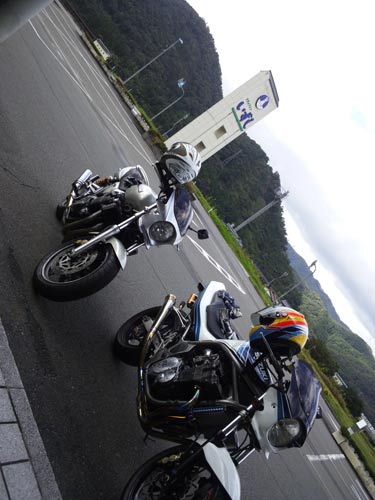 久しぶりに出石そばを食べに行くことにした。朝5時半に起床。今日はGSF1200野郎さんと二人でツーリング!ZX6RR野郎さんは、松江に仕事で先日から出張らしい!7時半に駐車場出発!丸太町のGSにてガソリンを入れる。???ん?なんか違うぞ?これは周山コースだぞ!と、勘違いから始まったツーリングだ(笑)西大路まで丸太町通りを走り五条へ向かう。桂大橋で案の定、スピード取り締まりしていた。天性の嗅覚でそれを察知し50km/hにて無事通過。いつもの縦貫道手前のコンビニにトイレに入る。今日も先導として重圧にさらされる。一応口頭で道順を言っていたつもりだが・・・縦貫道に入り順調に走る。途中ふわわkm/hなど出しながら(冗談ですよ)丹波終点まで走る。27号線を走る。丹波綾部道路目指してひた走る。?雲が低いぞこの辺りが酷い!濃霧注意だ!前が見にくいぞ!と、天候も怪しい。行く手は暗いが大丈夫か?有料の丹波綾部有料道路に入る。順調に加速!ん?GSF1200野郎さんがついてこないぞ?ハザードを出して路肩に止まる。待てど暮らせど来ない(5分もたってないが(笑)有料道路入り口のバーが上がらなかったらしい。事故やスピード違反じゃなくほっとしたよ。舞鶴若狹自動車道の分岐を超えるとますます空模様が怪しく・・・・降ってるのか降ってないのか分からない位だったのが完全に降り出した。あまりにひどいのでトンネル出口手前で路肩に止まる。これは本来だめなんだろうなぁ・・で、どうしようかと相談しようとしたらGSF1200野郎さんいきなり出口に小便しにいった(笑)終わったのを見計らってこっちも小便だ!切れが悪いから時間がかかったぞ!出しなにコーヒー飲んでたから利尿作用が発揮されたようだね?あ、俺はつられションだよ~コーヒー飲んでないし(笑)。しかし眠眠打破飲んだからなぁ似たような物か(笑)仕方が無いのでそのまま突っ切ることにした。与謝天橋立終点で降り府道二号線を西に向かってひた走る。何とか降っても小ぶり程度でそのうちに晴れてきた。途中の岩屋峠のコーナーがきつくて膨らみそうになった(笑)次は上手く走れるだろう!そのすぐ後に工事信号があったのだが早く復旧してもらいたい次回こそ膝すれそうだぞ(笑)ついたのが10時前だったのでドライブインいずしで休憩。前もここで休憩したなぁ誰かが、爆音のGSF1200でウィリーを何度もしていたなぁ出石について近又に行った!以前名田庄でにしんそば食べて写真を撮るのを忘れていたので事前に用意しておいた。食べ方知っているのに若いお姉さんとコミュニケーションをとるGSF1200野郎さん(笑)で、食べる前に写真を撮るのをやっぱり忘れGSF1200野郎さんに指摘され二皿目を食べ終えてから写真を撮ったよ(笑)いつもの通り一人前と追加一人前を食べたよ。結構腹がふくれた(笑)ここでZX6RR野郎さんにメールをした松江に出張らしく明日まで帰ってこないらしい。今日ならここで待って居ようかと思ったのだが・・・(笑)明日までは待てないよ~店のお姉さんが今日は晴れの予報だったからこれからは大丈夫でしょうといわれ店から出たら雨(笑)少ししたら収まったので帰途についた。ガソリンスタンドでガソリンを入れた152.2kmを12.2Lも使った走った。リッターあたりの燃費は12.2km/Lとなった。思ったよりよかったよ。途中何度か道を間違えた間違えた場所(笑)ここの四辻のところを左に行かなきゃならないのを右に行ったのでさらに間違えてしまったよ。GSF1200野郎さんの言うとおりに従って行ったらちゃんと鳥取豊岡宮津自動車道にたどり着いた。最後に由良でトイレ休憩。以前軽四輪トラックでDioを一人で引き取りに来たときは寂しかったよ~としみじみGSF1200野郎さんが語ってくれた。ここにたどり着いた頃は天気は完全に回復していた。残りは順調にゆき、9号線に降りたところでいつもの渋滞にはまったくらいだね。前走行308kmとなりました。お疲れ様でした!後はノルマのF1視聴がんばってください。明日のBD楽しみにしています!あ、新しい方のジャンパーがもう破けていたよ(笑)分かるかなぁ~ポケットのそばだ!新しいじゃけっとほっすぃ~!今日の駐車場右端になんか道具が置いてあるなぁ追加一台来たらおけないよ~(笑)