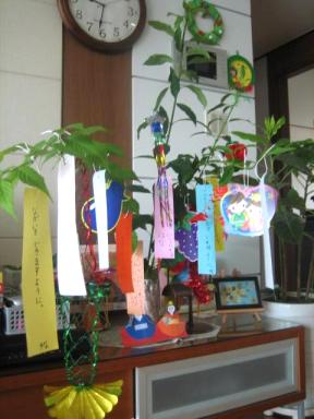 先日、まね母が 「七夕セット」を送ってくれたので、昨日ぶるたずと一緒に飾り付けをしました~~ とは言え、笹が手に入らず。日本ならその辺に生えてるのに、韓国ではあまり見かけません。以前 カルボ姉さんが住んでた某高級アパートの敷地内に植えられてるのは見たけど、さすがに採って来る勇気は無く・・・(^ ^;;;がんがんとふたり、夜な夜な近所の公園に出掛け笹とは似ても似つかない普通の木を切って来ましたま、雰囲気さえ出ればいいわなぶるたず、それぞれ願い事を考え3枚づつ書きました。出張で居なかったがんがんの分はまねりんが代筆。「10kg痩せれますように。できれば早急に・・・」本当は20kgと書きたかった・・・こんな願いで、ほんとすんません(- -;;たずらさんの願い事は、こちら さすが保育園児です。可愛いです。「お姫様になりたいってのはどう?」って聞いたら、「ふんっ!」と鼻であしらわれてしまいました^ ^;;たずらさんも、すっかり成長したようです。ぶるるは、現実的なお願い事をしました。「テコンドーの師範になりたい」「テストでいい点が取れますように」今日、明日と期末テストなので、最後の神頼みですそして、最後の1枚はこちら 大爆笑小学3年生が書く願い事でしょうか・・・・(^ ^;;;;どうしても長生きしたいんだそうです。今からお願いして、頑張って下さい^ ^まねりんの願い事はもちろん「家族皆が健康で過ごせますように」皆さんの願い事はなんですか?^ ^明日、晴れるといいですねーー