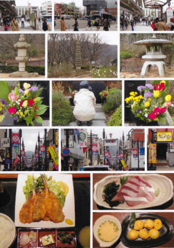 トラ五郎の年末~年始の出来事を備忘録として纏めました。12/26 年末の墓参にサクラさんと鎌倉霊園に出かけました。平塚駅南口に近いJA湘南本所ビル前で農協の方が新鮮な野菜や花を売り始めたところで墓参用の花を購入。10:21 鎌倉駅に到着。バスに乗車し大刀洗で下車しました。バス停からお墓の間には石造りの置物が各所にあり墓に着くと除草とツゲ玉・アジサイ・カイドウの剪定をし花を供え焼香しました。12:33 鎌倉駅に戻り昼食場所を探しました。父母が一緒だった頃は駅ビルや近くの和食店で懐石料理をよく食べました。駅ビルの食堂街を見た後小町通りを歩き居酒屋「あじたろう」に入りました。入口が狭く静かで開店前かと思いましたがドアーを押し中に入るとほぼ満席。大あじフライ定食、寒ブリのお刺身、こだわり鯛出汁!!明石焼き寒ブリのたっぷり葱しゃぶ(写真なし)をいただきました。私は熱燗でいただきましたがどれも美味しくまた行きたいと思いました。12/31 サクラさんがインターネットで注文した岐阜県(株)サラダコスモが作ったおせちが送られてきました。箱の中には赤と黄色の風呂敷に包まれた2段重ねの料理と栗のお菓子が入っていました。恒例のNHK紅白歌合戦はバラエティー番組の色彩の濃いものでした。朝ドラ番組「あまちゃん」の出演者を大勢登場させ北島三郎の紅白最後のステージも力の入れすぎシニアの演歌歌手の後ろで若者の歌・ダンスグループを一緒に演技させ視聴率を稼ぐために明るく賑やかな番組にしたという意図を感じました。1/1 朝はお屠蘇とサクラさんの関東風お雑煮をいただきました。昼前に息子と娘家族が到着。ちこり村の田舎の手づくりおせちを開封。サクラさんが作った料理と一緒にいただきました。「ちこり」は水耕栽培で作られる発芽野菜で極小の白菜の中心部のような形をしていました。しゃきしゃきとした水々しい食感ですが一番の人気は栗きんとんでした。食後孫たちはパパ・ママ・サクラさんと一緒にウノをして楽しみました。1/2 午後サクラさんと平塚七福神巡りで訪れたことのある三嶋神社を参拝しました。昨年井の頭弁財天で求めた破魔矢を返納し参拝した後巫女さんから御神酒を頂き今年も病気や災害から護って貰うために新しい破魔矢を求めました。おみくじはサクラさんが24番の大吉、私は39番で吉でした。えびす様もしめ飾りと両脇にぼんぼりが置かれ境内は提灯が吊されていました。神社入口近くには風雪に耐えたという感じの松の大木がありました。一番下は破魔矢に着いていた絵馬で神社のすぐ前の材木店には並べた木材に年賀の絵が描かれていて目を引きました。