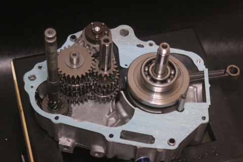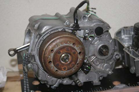 以前組んだ「超ジャンクエンジン」ですが異様にパワーがなかったので「何かやらかしてる!?」と焦ったのとミッションがあまりに気にくわなかったので再度降ろして分解して、組み直すことにしました。「純正クロスミッション」の残りで組んだ「純正ワイドミッション」。しかも、遠心クラッチ。これはヤバイ、というかヒドス。まず、広すぎてスプロケットが合わせられません(>_