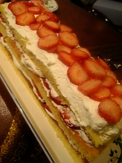 大学の授業がなくてお休みだったので…お菓子づくりに励みましたイチゴがおいしい季節ですよねでは、早速…ショートケーキです↓なかなかうまく出来ました~丸いショートケーキよりも、縦長にして、イチゴを無造作に並べたほうがかわいいかなぁ~と思ってやってみましたスポンジを縦長に3枚分切って、スポンジ→イチゴ→生クリームって重ねていくだけホントはミントを上に散らすともっと彩りが良くなるんだけど、無いのでパス簡単で美味い、優秀なショートケーキこれを持って、友達んトコ行ってきま~す