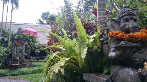 最初の予定ではモルジブにダイビングしに行こうと考えていたのだけれど久しぶりのダイビングがモルジブじゃ心配だということで、では三宅島にでも行くかとなり調べたらあまりの水温の低さに断念いつの間にか日々が過ぎ、バリ島に行こうと決めたのはほんの5日前だったそれでも飛行機はとれるもので、行きは成田からガルーダの直行便帰りはジャカルタ経由羽田着 普通の値段で行けましたバリ島、20年前くらいに一度行っただけで情報も計画もあまりないまま出発選んだ場所はウブドUBUD、山あいにある芸術の町自然がいっぱいだろうってイメージでしたが、お土産屋さんがいっぱいの町でもありました町から車で15分ほど離れたところにあるAlila Ubud Hotelの周りは森と田んぼ朝起きるとたくさんの鳥の声がして、森の空気はすがすがしい朝食を食べにレストランへ行くと、下に見えるのがこのホテル人気のプール朝食は曜日変わりのメニューがあり、好きなものを選び好きなだけ食べられるこれが楽しくて毎日の朝食は充実してたこの日は町まで出かけて人も車も多い道を歩いてみたごちゃごちゃした感じと、あちこちにあるお供え物がバリらしさを醸し出すモンキーフォレストに入ってみると、猿だらけ小型のおさるさんが普通に歩き回っている森の中に寺院もあり散歩コースをぐるっとまわる日中はやはり暑いけれど、たぶん少し山の気候なので嫌な感じはしないここからタクシーでゴア・ガジャGoa Gajahへタクシーは交渉で値段が決まるので、小銭が必要運転手さんが象の洞窟だね!って言ってました階段を下りていくと沐浴場がありその奥に、この岩をくりぬいた洞窟があるそこからさらに階段を下りると巨石があったり、池があったり、ちょっとした庭園になっていた遺跡を見た跡はタクシーで移動、ザ・ブランコ・ルネッサンス美術館へ絵画自体は理解しがたいものも多かったけど、額縁がどれも凝っていておもしろかった美術館のすぐ近くの谷に寺院があり、興味を引いたので歩いて行ってみたウブド寺院、彫像や建物が美しくいい感じ明日から祭事があるとのことで準備がされて、もう一度来ようかなと思ったんだけどね写真がいっぱいなのでつづきは明日