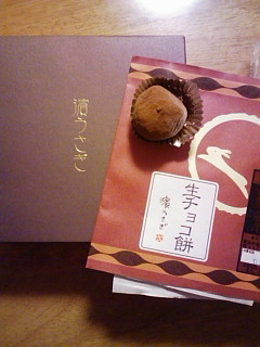 お餅にくるまれた、生チョコでまわりはココアパウダーでまぶしてある