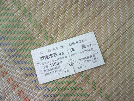 明けの本日、矢島線乗った事ないので羽後本荘駅に行って矢島線乗ってきました。由利高原鉄道鳥海山ろく線が現在の名、由利高原鉄道が経営しています。実は天寿酒造の経営でもあるみたいです。そんで元国鉄でもありました。■矢島駅の往復切符 未だ硬券■おばこ号子吉川に沿い、稲刈りの終わった山間を縫うように走っていきます。■一両編成の列車はJRとはまた違った揺れ方■1時間ほど、矢島駅に到着■矢島駅自体実は全県新人の時に来たことあります。地元高校生とか小学生が多かった。廃線ギリギリとはいえやはり必要な路線なんだと思う。次また乗りに来たい場所だと思った。