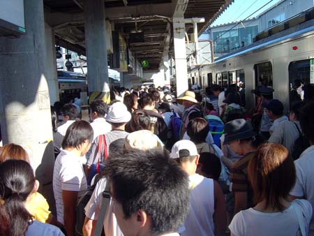 8月は25日の話になりますけど、大曲の花火大会が開催されました。JR秋田駅でも恒例の大混雑が予想されているためその日だけ対策本部みたいなのを設置し、駅員を総動員させるのですが、なんと運がよいことに私はこの日、夜勤明けであった為、未だかつて見たことのなかった大曲の花火とやらを見るべくその作戦を実行したのであった。15:30 St.Omagari■わーい、人がいっぱいだー (゚∀゚)18:30 Sajiki■桟敷には人、人、人!!どっからこんなに集まるんだ!? (;´-`)そうして夏も終わりかけている8月25日、夜夜空には花が咲き続けます。噂には聞いていたが確かに凄い。地元の花火大会のフィナーレのような花火がぼんぼんと打ち上げられ続ける。大曲駅での超激動帰宅ラッシュを回避すべく、私は大曲駅前にある同僚宅へ。本日はここでビバークです。あぁ、夏も終わるんだな~
