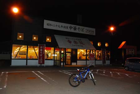 メランコリーな毎日を送っておりました影響で暫くの間、更新が止まっておりましたが今日からまた再開です。夜中、寮の自室で同僚と集まっておりまして、夜も更けたのでそろそろ皆自室へ帰る時、私は明日が休みなので一言「どれ、実家にでも帰るかな」23:55 now _, ._( ゚ Д゚) は!? 終電とっくに行ったぞ!?私には自転車がある。早速荷物をまとめ、自転車にまたがり秋田市にある寮を飛び出したのは日付も変わった0:30頃であっただろうか。■深夜2時まで営業している中華そば屋は幸楽苑で 夜食&活力給油、注文したのはもちろん最安中華そば290円w■数時間前にドンキで晩飯も食ったのでこれぐらいが丁度良いwひたすら走る走る、月明かりがあるのでカモシカ山行ならぬカモシカツーリングとでも言ったらよいであろうか。道路には月の光で陰が出来るほどの明るさである。前回の北海道北東北ツーリングでも通った道を参考に真夜中の旧羽州街道を突っ走る。最高に気持ちがよい!■八郎潟商店街途中、休憩をする為に道の駅 ことおかに立ち寄ったのは夜も明けそうな3時半。東の空が若干蒼くなってきた。■私も自転車も小休止休憩室の長椅子に寝転がり、仮眠をとることにした。30分ほど寝転がってまた北上するのだ。微睡む (´-`).。oO目が覚めたのが午前9時半・・・ガ━━(゚Д゚;)━━ン!やっちまいましたな。もう完全に日が昇ってますよ。しぶしぶ7号線を北上、八竜のサークルKで朝飯を調達し能代入りしたのが10時過ぎであっただろうか。■能代南中近くの農面道路で。今日も暑ぃ・・・簡単に買い物をして実家の八森に着いたのは14時を廻っておりました…。本来は朝7時には着く予定であったのに・・・。■能代市の隣は我が町。。。そんな時代になりました。ともあれ無事自宅に帰りました。自転車で・・・。今回私は恒例のバカがやりたくて夜な夜な任務を遂行したわけでは御座いますが、非常に楽しいモノでありました。真夜中のツーリング、夜風を切るのもなかなかですよ。ほんと、メランコリーなんて吹っ飛びます。
