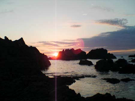 午前は雨でしたが午後は雲の隙間から太陽が。お盆で帰省している友人と共に地元八森は滝ノ間海岸で泳ぎました。ヽ(゚∀゚)ノウニやアワビと戯れていたらシロガヤって海草みたいな鳥の羽みたいなのに触れてしまい、 (|| ゚Д゚)イテェ!!!痛い目にあいますた。そんで今はとってもかゆーい…最高に厄介な野郎です。憎きシロガヤとはかゆーい…私の右腕は今、水ぶくれ必死!!こいつが一週間は続くらしいwwははは、笑うしかねぇやw■滝ノ間海岸の夕焼け日が沈み、水平線の上の空はまだオレンジ色、その水平線には早くも漁り火の灯りが点々と並び、そのちょっと上は紫色の空と雲、眼下に広がる八森の夜景と見慣れていたようで久しぶりに見た故郷の海を見ながら友人と二人、国道101号線を自転車で走りました。やっぱり平和な八森が大好きで御座います。持つべきものは友と美しい故郷でしょうか。故郷を離れている今日この頃、改めて故郷の美しさに感激したひと夏の出来事であります。