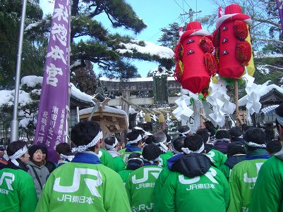 1月17日、秋田の冬の風物詩であり秋田固有の祭事伝統行事である梵天祭が太平山三吉神社で行われた。秋田駅からも巨大な梵天を奉納、私も地元の白瀑神社以外の祭に参加するのは初ではあるが、これもいい機会と思い参加する事となった。役割は御神酒持ちw県内様々な梵天祭があれど、ここ太平山三吉での梵天祭は俗に「けんか梵天」とまでいわれるほど荒々しく勇壮なもの。もともと梵天とは神様が降臨なさる場所を示し、それは神聖な場所である事を意味させる。民俗学の大家、柳田国男によると語源は「ほで」という古語で、いわゆる「秀でたる」意味を有し、神様が降りられる祭場を標示するため、高く茂った樹木や竿に御幣・幣束をつけて標示したとされる。※太平山三吉神社由緒抜粋■我々は安全・無事故祈願!■いろんなぼんでん見るのも、当然参加するのも初めてだがなかなか面白かった。クライマックスの興奮は祭独特のもの、これだけは変わらない。こうした文化は守り継がれていってほしい。