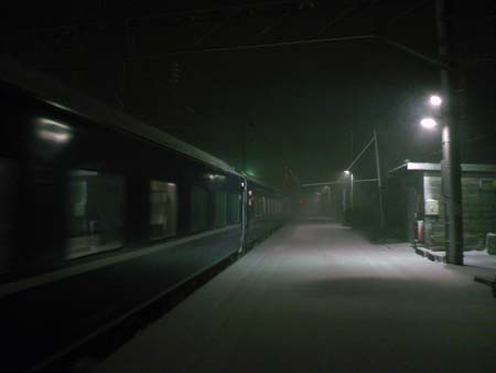 本当、秋田は一気に冬になりましたな。お陰で八森の実家から秋田へ帰るときになるべく夜まで実家で怠惰な時間をとるべく奥羽線最終の上り列車、寝台特急日本海大阪行きを指定していたのですが風雪の為に列車の中で2時間近くこれまた怠惰な時間(まぁこれならいいか)を過ごす事になったりしました。■東能代にも40分近く遅れて到着秋田に着いたのは日付が変わってから。深夜、秋田駅でもまた大幅に見合わせになるであろうと。羽越線経由で大阪に向かうこの寝台、案の定なかなか秋田駅を発車しようとはしない。それを横目で見ながら寮へと向かう。寒い寒い寒い。秋田の寮が羽越線にあるので数分もすれば通過していくであろうと布団の中でその通過音を耳をこらしながら眠りに就こうとしたが・・・朝になっても通過せず・・。次の朝、出勤時にはまだ秋田駅にいました。大阪についたかなーって目覚めたお客さん、窓の外の「秋田」の駅名にはさぞ驚いた事でしょうな…。次の朝は出勤するも大騒ぎ、今年一番の“冬”に列車ダイヤも大幅に乱れ、とりあえずその日本海に乗車しているお客さまの為におにぎりとお茶を配るべく駅の事務室には朝から山積みの食料が。これからの季節は仕事も大変だー…がんばりますぞ。