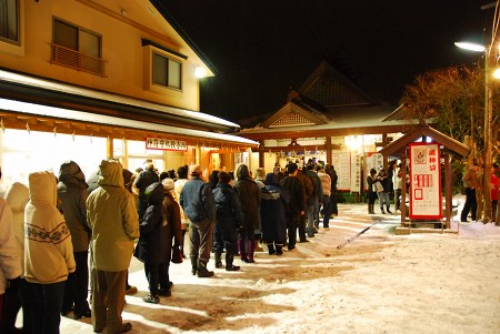 さて、明けましておめでとうございます。1月も早終わろうとしている今日、今年最初の初更新でございます。管理人は今日まで正月気分が抜けなくて更新も仕事も何もかもをサボっておりました(嘘)とりあえずせっかくの初更新なので元旦の初詣の事でも載せましょう。1月1日行く年来る年を見終え私はスーツ姿で真夜中、吹雪の中の秋田市を自転車で走る。何故スーツ姿なのかはさておき2007年の行く年来る年は我が前世の故郷もとい、我が第二の故郷、尾道が映った!お陰で2008年をスキッとキレ良く迎える事が出来た。ありがとうNHK!さて、自転車で向かった先は秋田市は新屋の三皇熊野神社初詣にここを選んだのは秋田市に身を置いている間は三皇さんを氏神様として奉っているからである。am0:20既に参道には参拝客の列が50m程出来ておりました。■三皇さんは思ったより混んでいた。三皇熊野神社は秋田市南部地域の守り神。秋田に根付いてからはよく訪れている。皆さんそれぞれの想いを抱き新年の詣に来ている様子。合格祈願の御守を買う学生や交通安全、家内安全を買う老夫婦やら私はそんな中、破魔矢と熊手、新しい御幣を貰う。■おみくじ 控えめに吉と出た。八森以外で年を越したのは人生初めてになります。慣れませんが新鮮でございます。と、いう事で謹んで新年の御喜びを申上げます。今年も何卒宜しくお願い致します!遅…