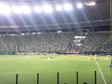 ずっとチャンスだったらいいのにって思うぐらい暑かった。。。まあ、ほとんどチャンスはなかったわけですが覇気が感じられないですね。ただ淡々と試合を消化しているようにしか思えない。もっと気持ちを見せて欲しいです。曲がりなりにも、昨年は優勝まであと一歩のチームだったわけです。最下位に沈んでもなんとなくやってるように見えるのは。。。ましてや、シーズン、クライマックスとあれだけ悔しい思いをしたんだから。期待が大きかった分、失望も大きいです。片岡が途中交代しました。ずっと肩の調子が悪いみたいで、それが成績に響いていますよね。6回もたなかった岸にしても、涌井にしても、万全には程遠い選手が無理して出るのはどうなんでしょう。一度、しっかり落ち着いてもらいたいです。今季、西武ドーム初見参。鷹のカブとしては初めての試合でした。開幕2戦目以来、3ヶ月ぶりの生カブでしたが、状態良すぎますね。3打席目なんか、止めたバットでヒットですからね。ちょっと前では考えられないヒットでした。猛打賞で、アウトになった打席も完全に捉えた強烈な打球でした。むしろ、今日一番の当たりだったと思います。昨年までと同様、どうしてもライオンズ戦は複雑な思いがあります。選手単体で言うと、カブが一番。でも、チームだとライオンズが一番。そこには、どうしても無理が生まれてしまいます。バファローズ時代のように、チームに対して愛着が出てくれば、また違ってくるんでしょうが、現状まだまだ複雑な思いを消化できずにいます。答えなんてないんでしょうね。5番DH第1打席 中安(岸)第2打席 左飛(岸)第3打席 右安(岸)第4打席 左安(藤田)