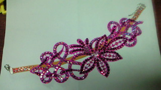 石と金具が届いたので、ようやく完成♪ はめるとこんな感じ結構よくない? ついでに、残った肌色ゴムをつかってラテン用も!こっちは、まだ未完成!真ん中に石をいれる予定 なんだかくせになりそう。。(笑)