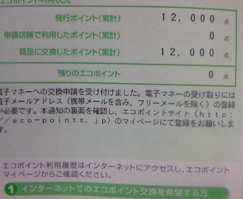 12月に申請したエコポイントの通知がようやくきました! EDYに交換予定なので、マイページにログインして手続きしました^^あとは、EDYの事務局からメールがくるのをまつだけ~♪2ヶ月かかったけど、一時期より早くなったね。^^ と思ったら。。うちは、Edyのポイントに交換申請してたんだけど、交換申請してからまた1~2か月かかるらしい・・><;まだ、メールがきてないので・・・交換できないでいるの いったいいつになったらもらえるのかな?^^; あれ?いつからフォトをいれるのにID必要になったの?めんどくさ~い><;