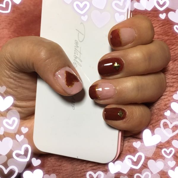 ミルクチョコレートとピンクベージュ使用 手描きの❤は、右手は難しい😱